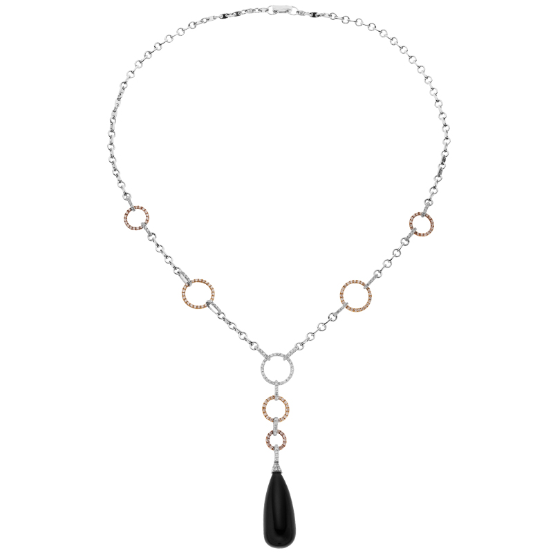 Náhrdelník z bílého, žlutého a růžového zlata s onyxem a diamanty. Délka 46cm