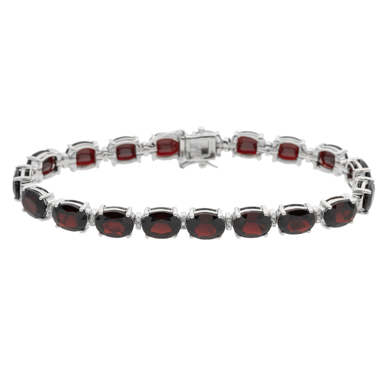 Náramek z bílého zlata s granáty a diamanty. Délka 18,3cm