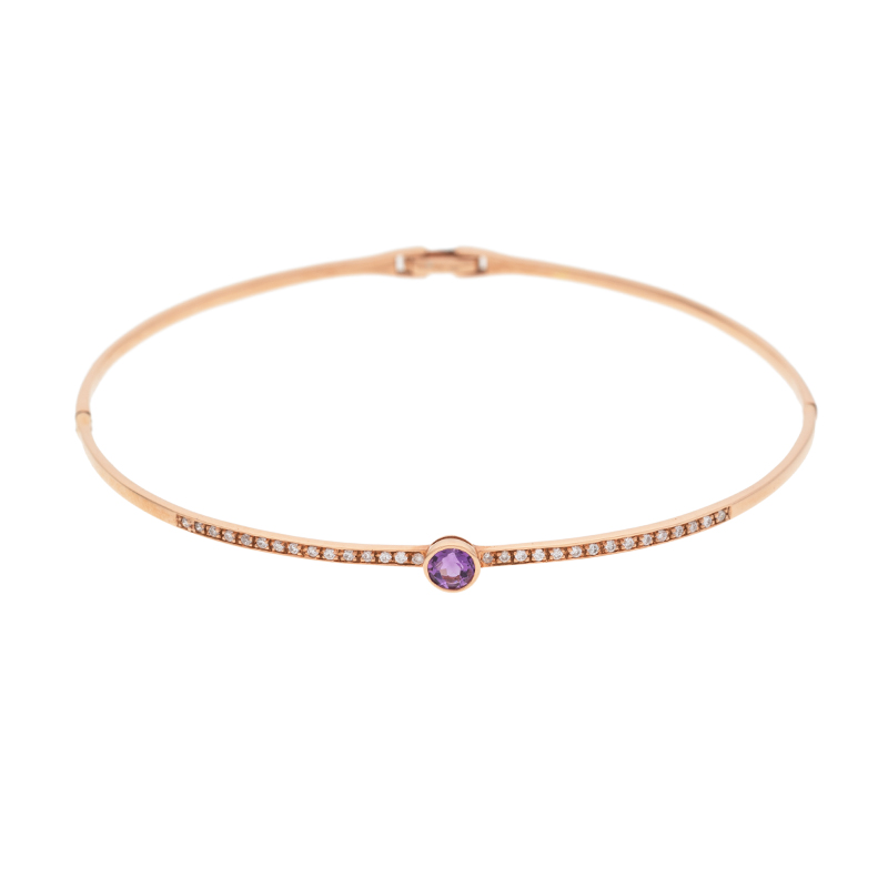 Náramek z růžového zlata s ametystem a diamanty