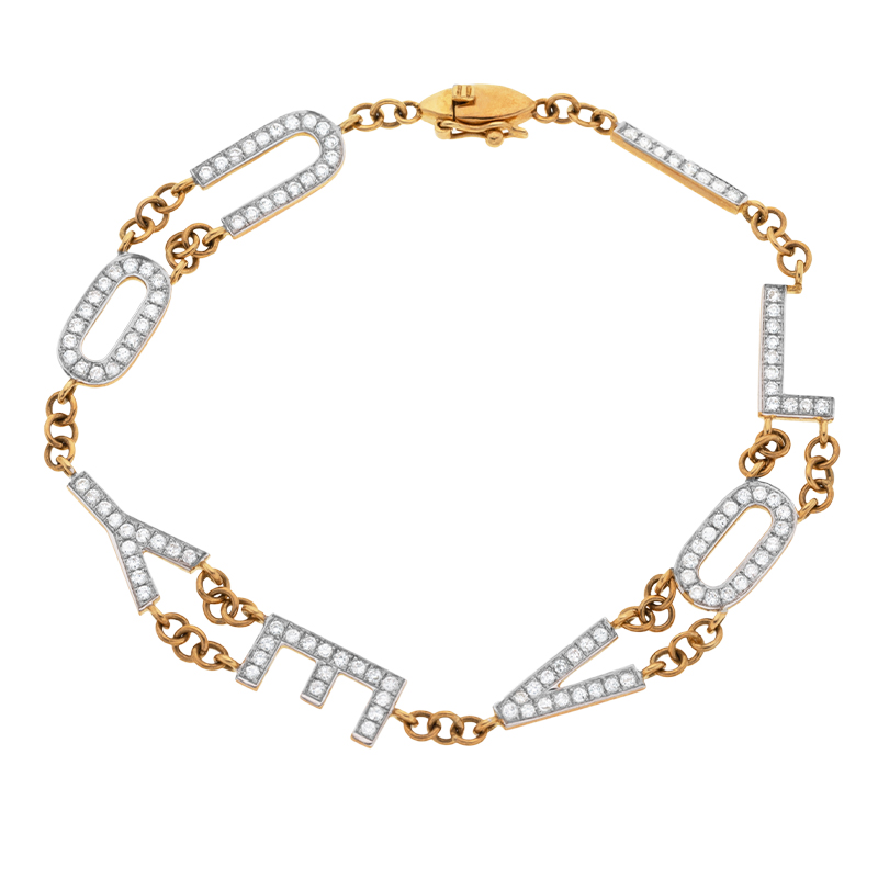 • detail Náramek ze žlutého zlata s diamanty. Délka 18cm