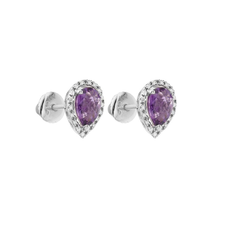 • náhled Náušnice z bílého zlata s ametysty a diamanty