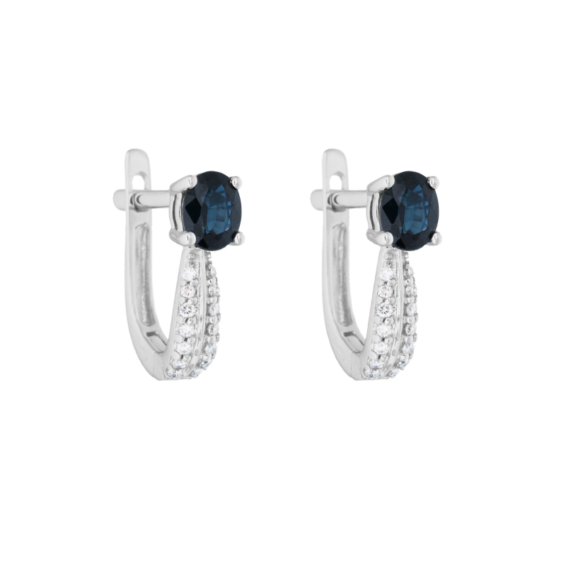 Náušnice z bílého zlata se safíry a diamanty