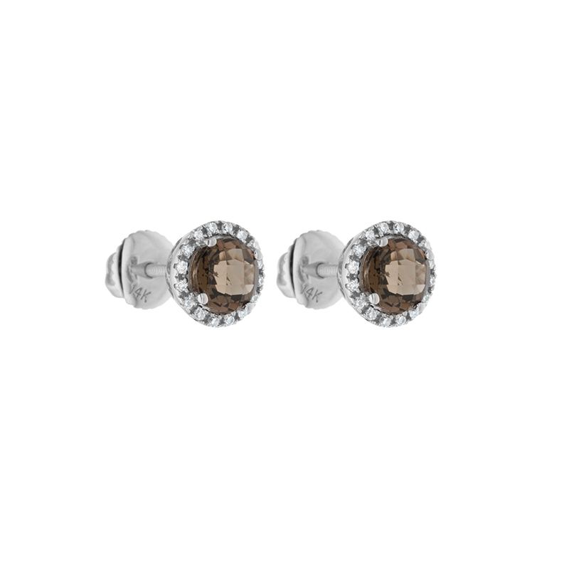 Náušnice z bílého zlata se záhnědou a diamanty