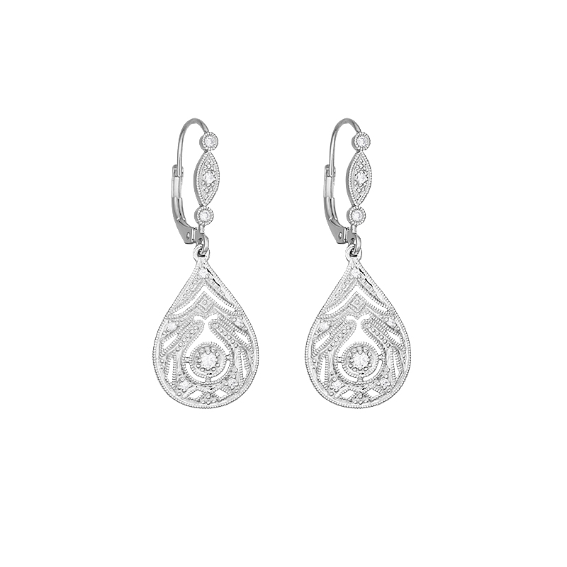 Náušnice z bílého zlata ve stylu art deco s diamanty. Celková délka 3,60cm