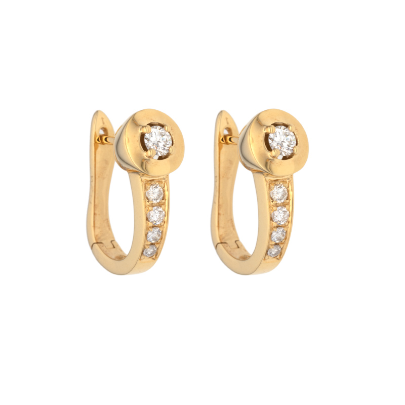 • detail Náušnice ze žlutého zlata s diamanty. Celková výška 1,90cm