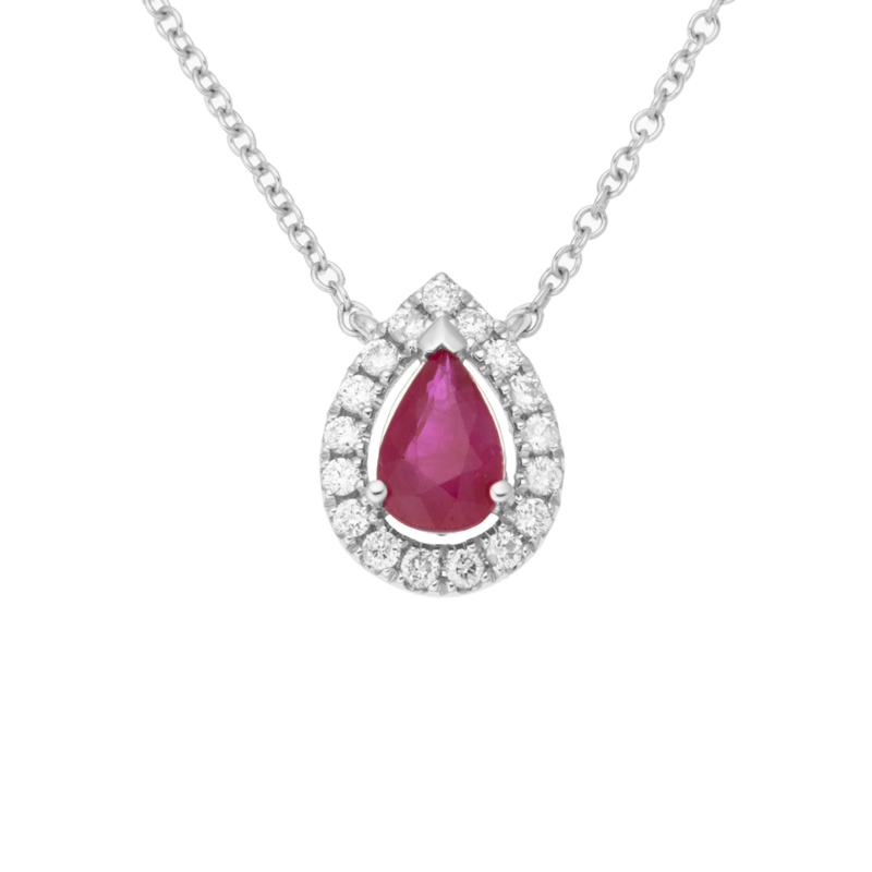 • detail Přívěsek z bílého zlata s diamanty a rubínem na řetízku o délce 42 - 45cm