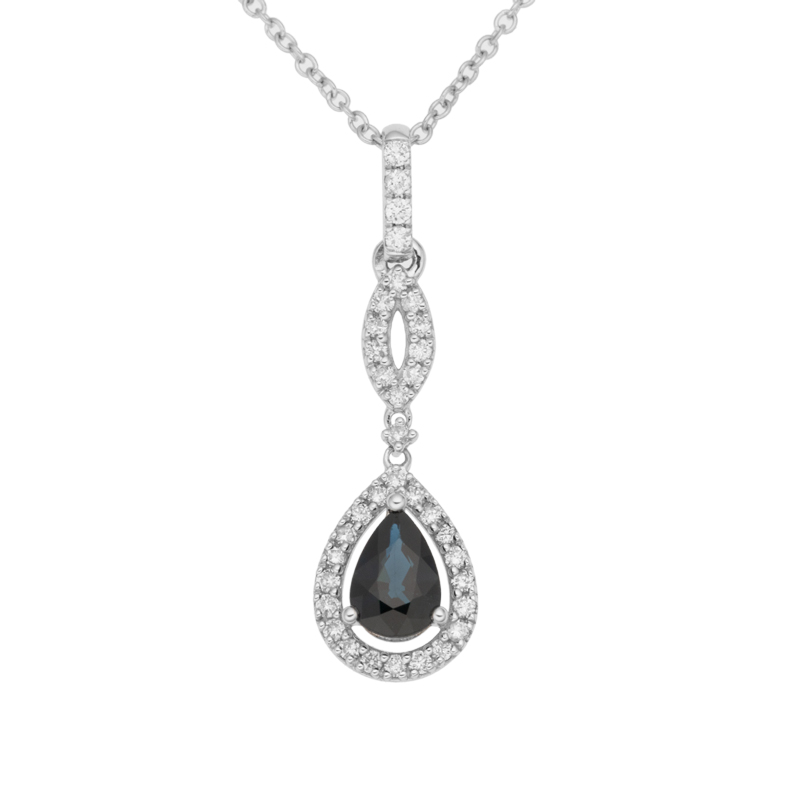 Přívěsek z bílého zlata s diamanty a safírem na řetízku o délce 42 - 45cm