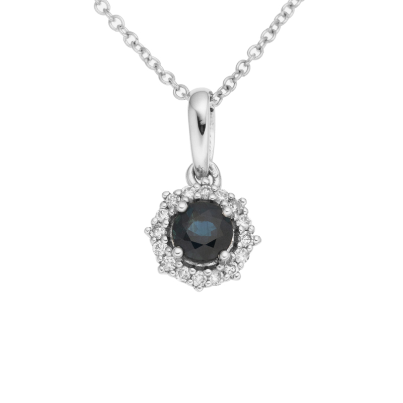 • detail Přívěsek z bílého zlata s diamanty a safírem na řetízku o délce 42 - 45cm