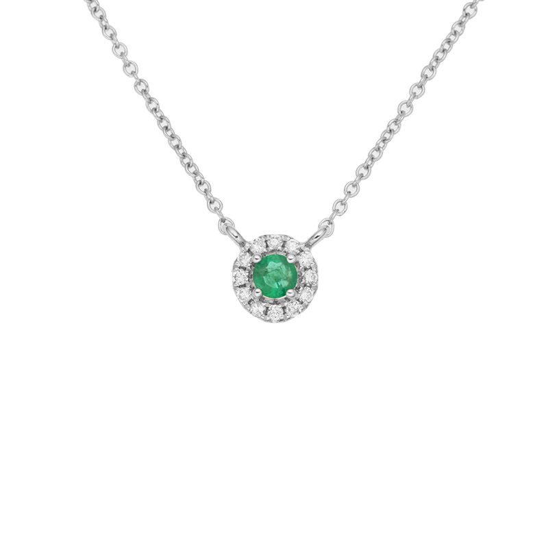 • detail Přívěsek z bílého zlata s diamanty a smaragdem na řetízku o délce 42-45cm
