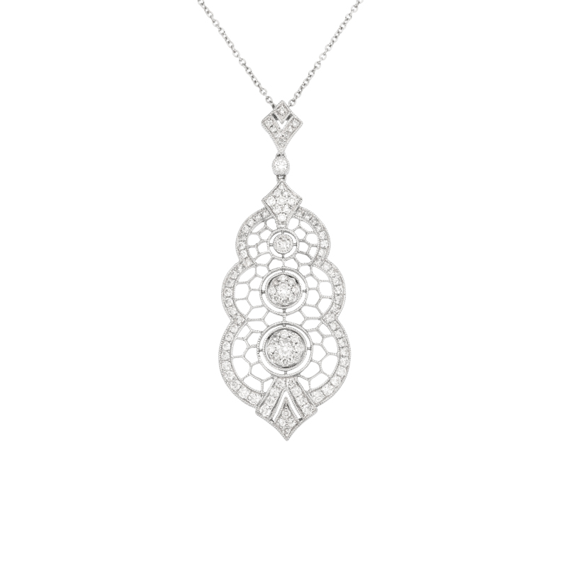 • detail Přívěsek z bílého zlata s diamanty na řetízku o délce 45cm