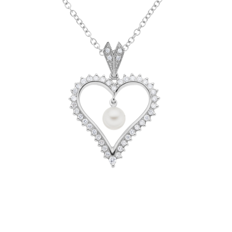 Přívěsek z bílého zlata s perlou a diamanty, délka 45m