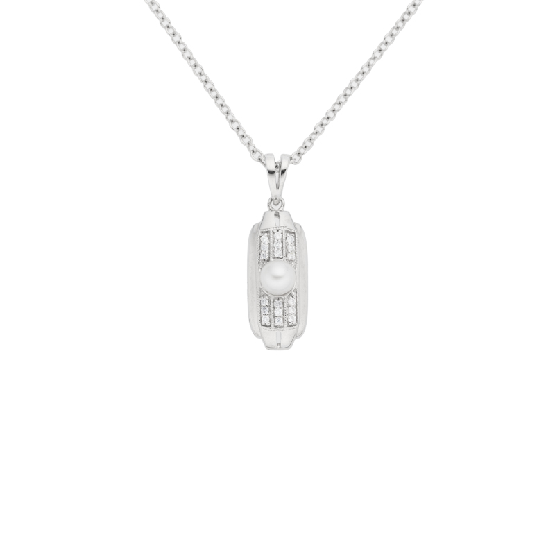 Přívěsek z bílého zlata s perlou a diamanty. Délka řetízku 44cm