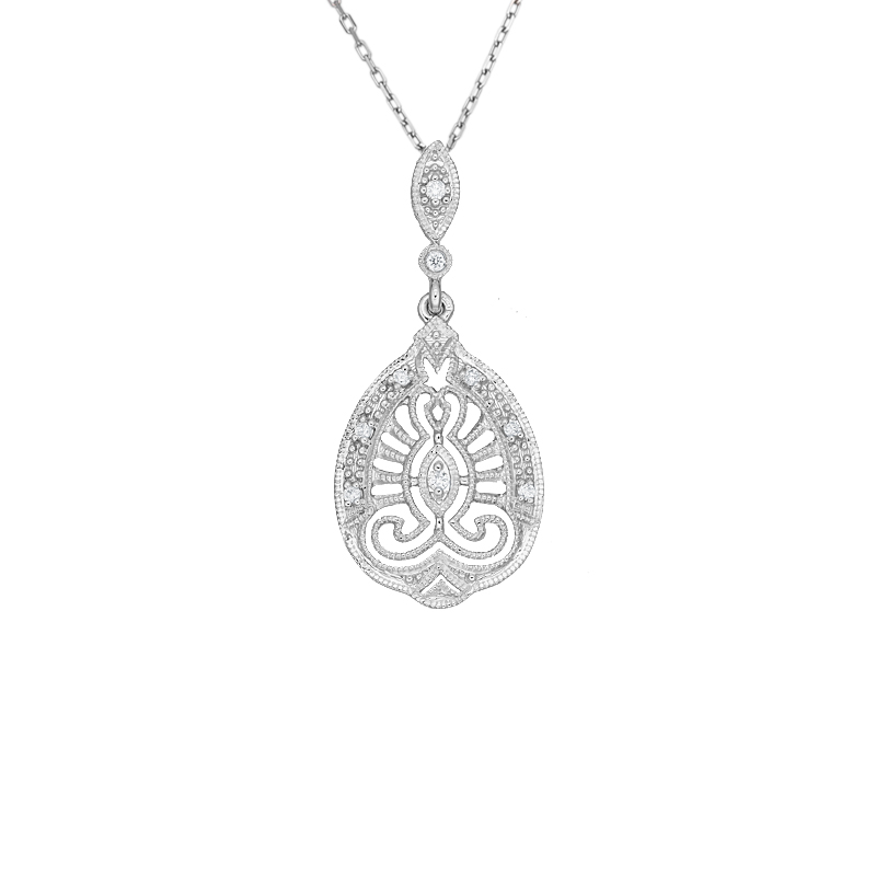 Přívěsek z bílého zlata ve stylu art deco s diamanty. Délka řetízku 45cm