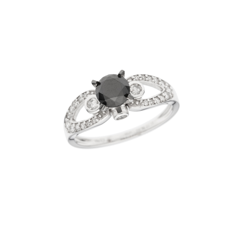 Prsten z bílého zlata s černým a bílými diamanty