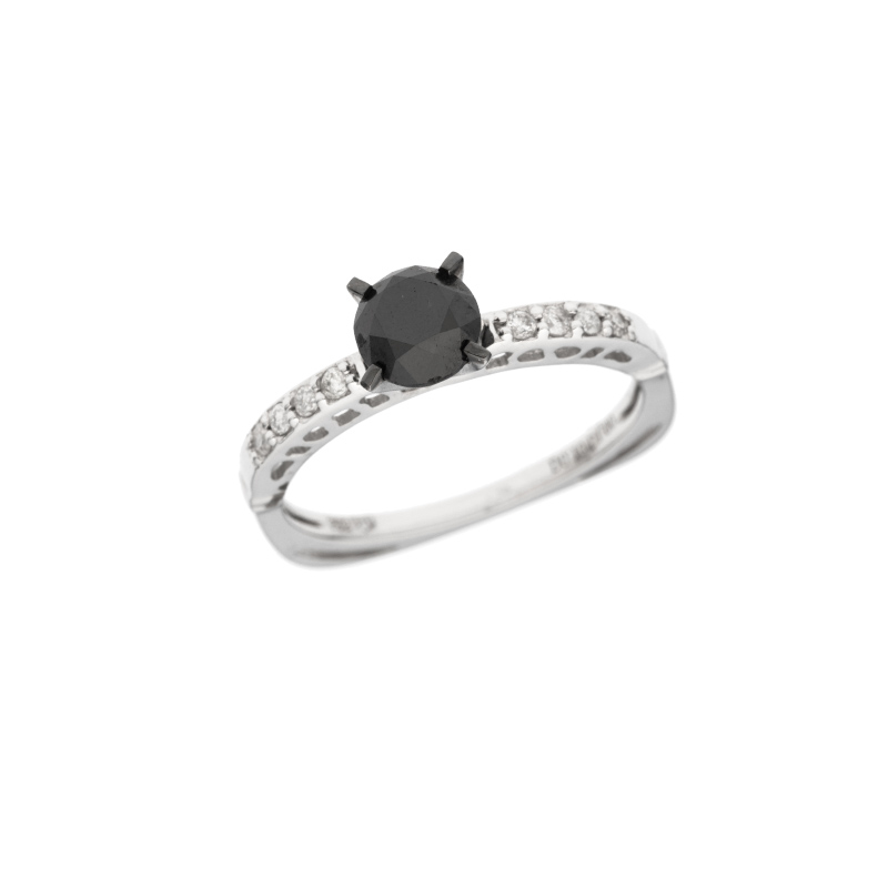 • detail Prsten z bílého zlata s černým a bílými diamanty. Zajímavý hranatý tvar