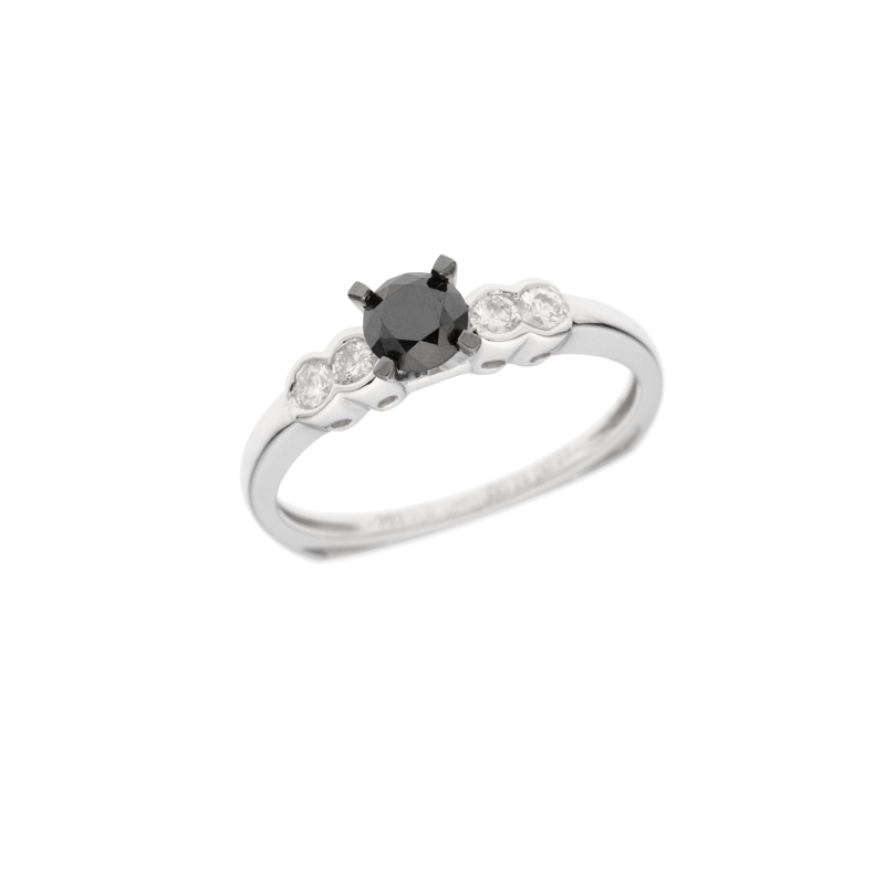 • detail Prsten z bílého zlata s černým a bílými diamanty. Zajímavý hranatý tvar