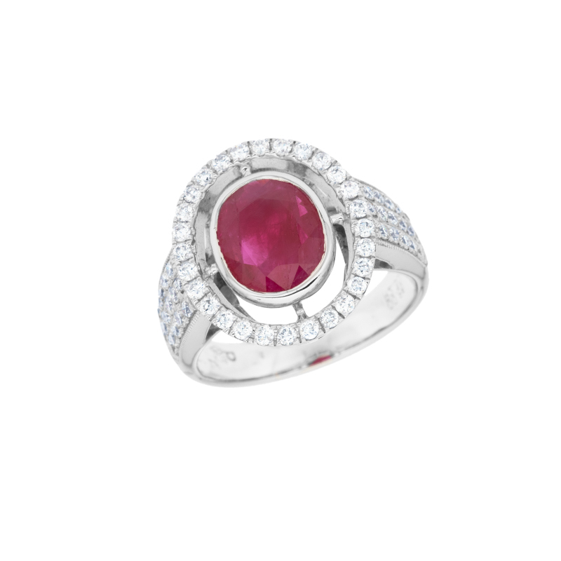 Prsten z bílého zlata s rubínem a diamanty
