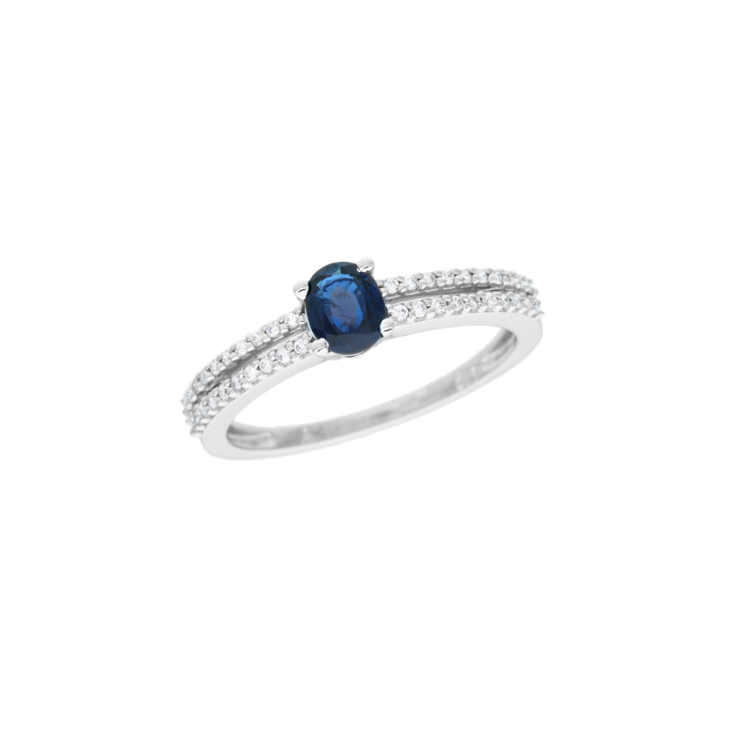 Prsten z bílého zlata se safírem a diamanty